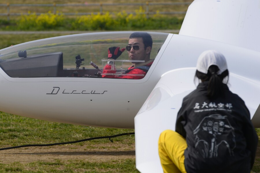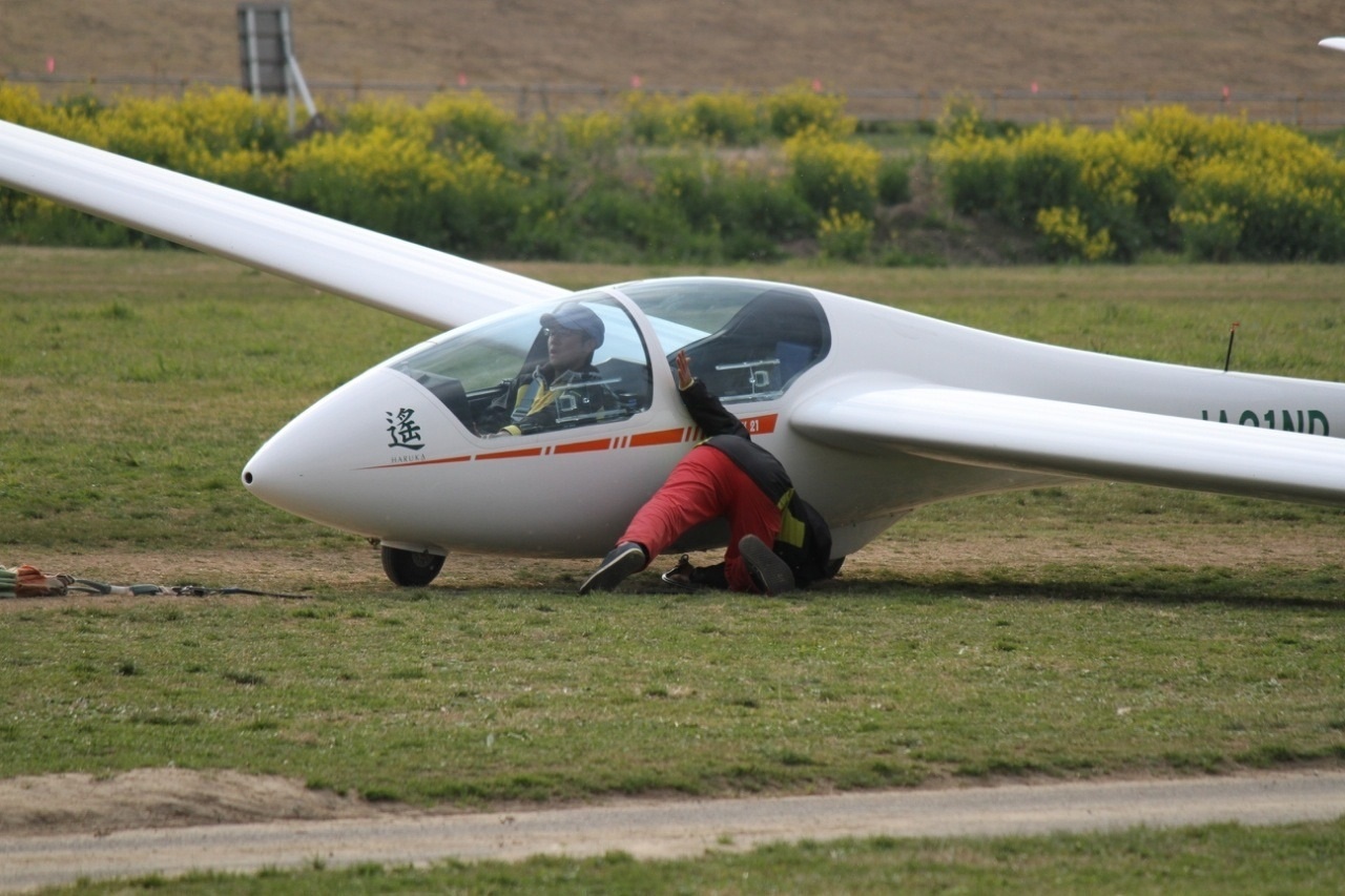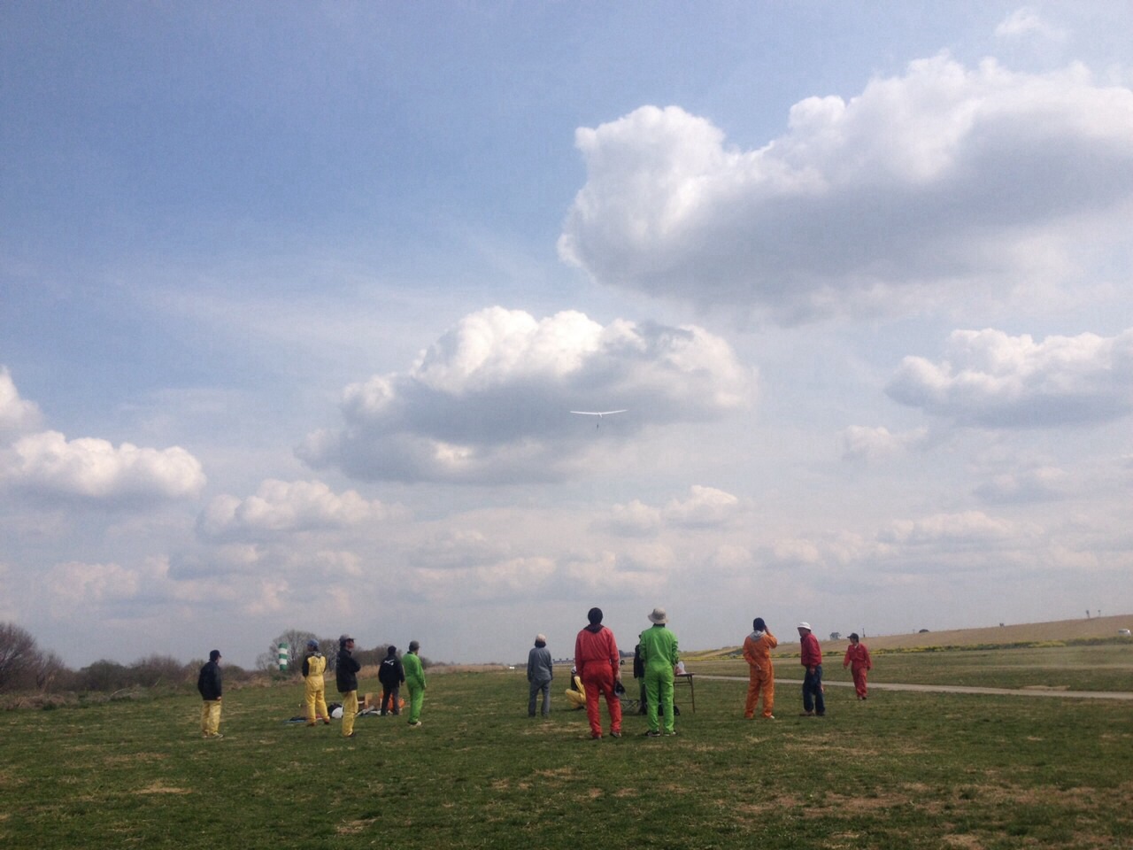 風向が南に変わったため、10時頃にピストチェンジがありました。終始穏やかな風でしたが、風向がよく変化していました。サーマルがよく発生しているからだそうです。積雲が沢山もくもくしていて条件良さそうです。