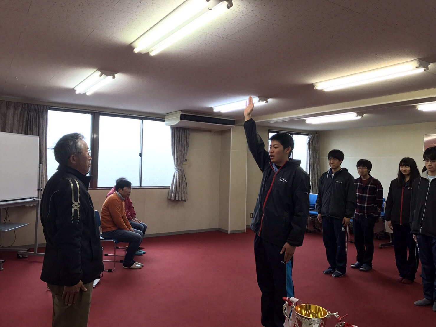 強い正対風に加え、新2回生にとって初めての順位がつく競技ということで、みんなわりと緊張してました。