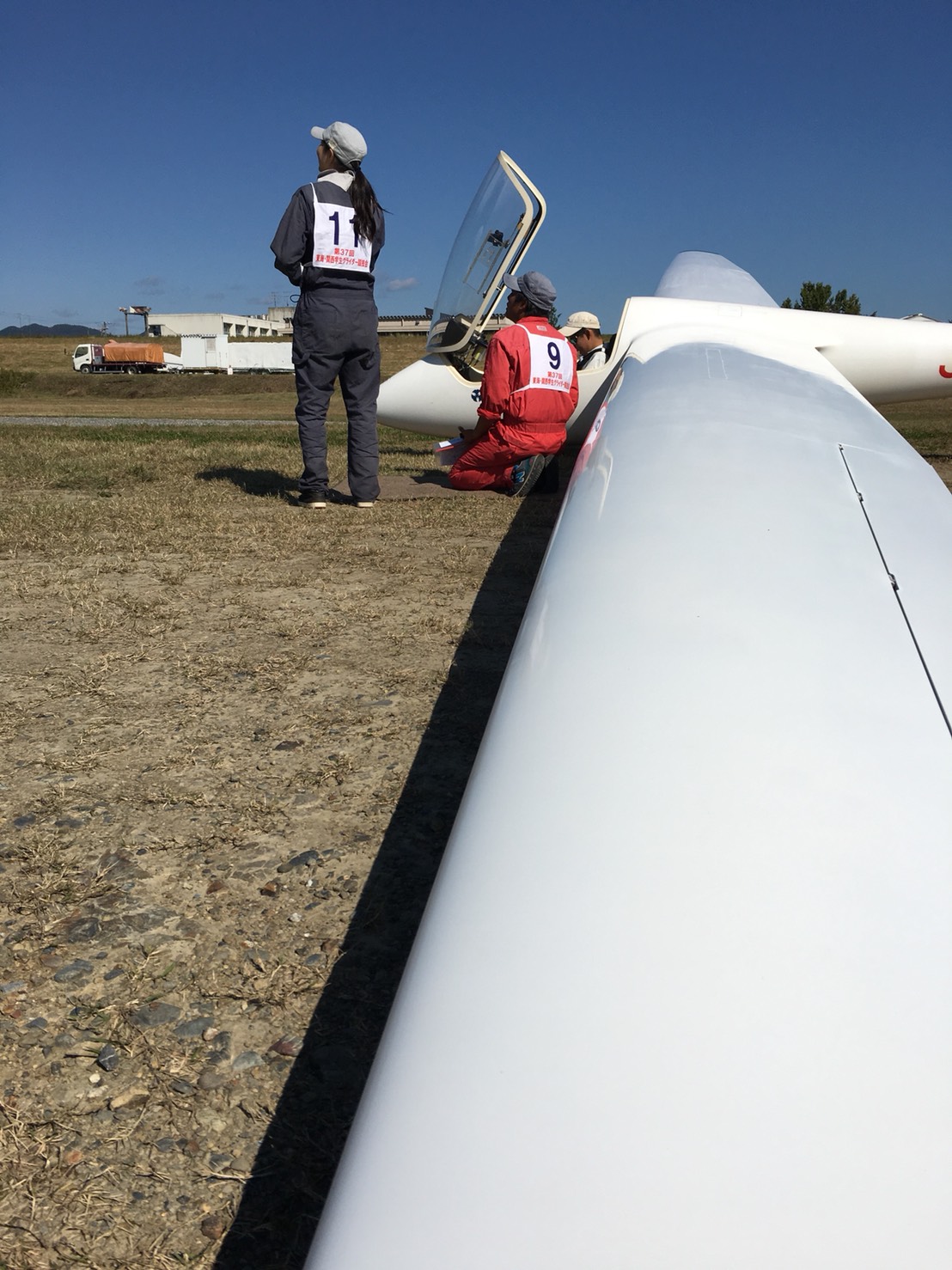 朝は一昨日の強風とは打って変わり静穏でした。21NDと557の2機で練習フライトを行い、チェックフライトが着々と進められ、名大では三番手の3回の小山さんまでチェックフライトが回りました。お三方とも合格しました!